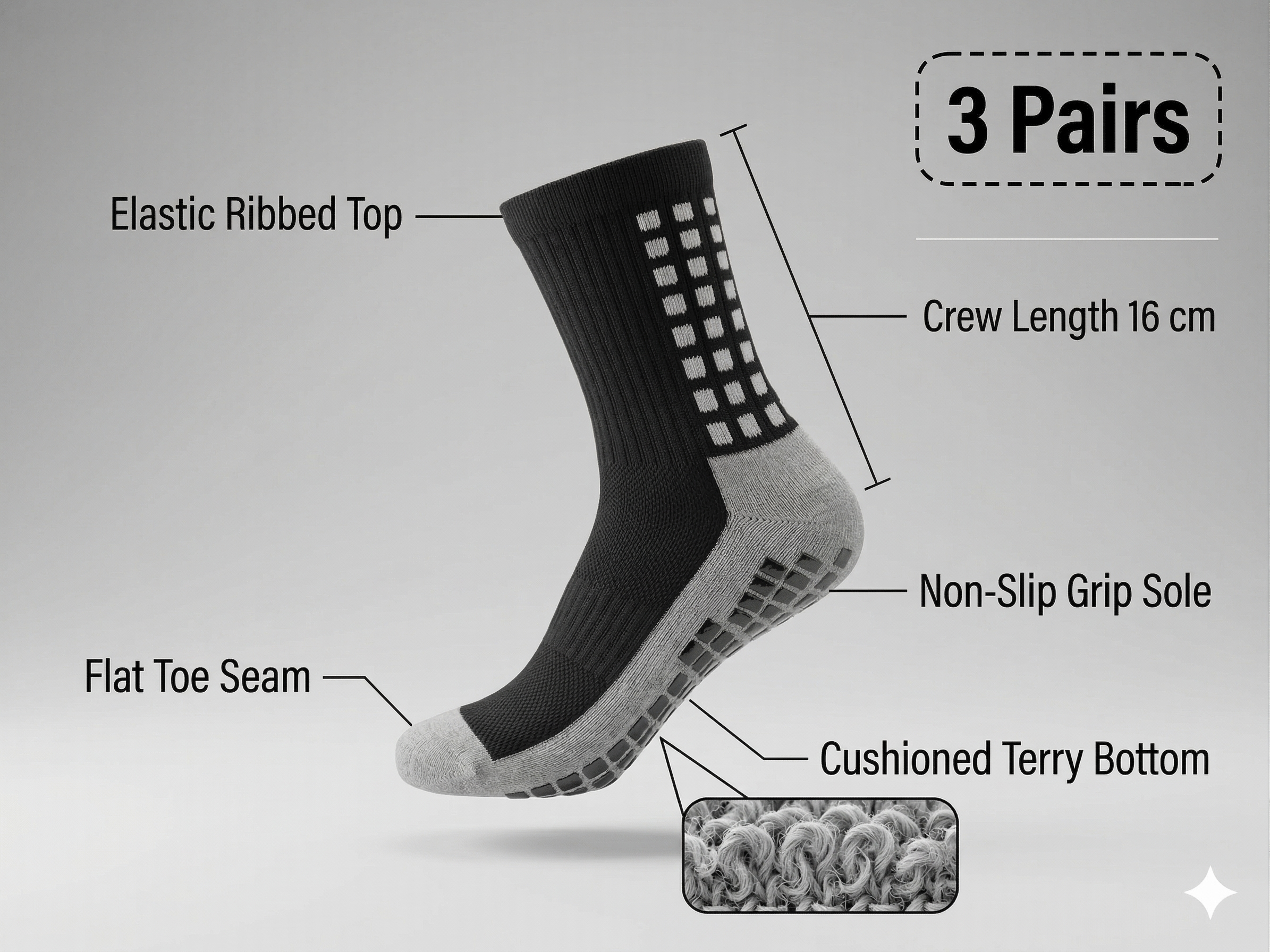 Anti-Slip Sports Grip Socks Combo (White, Sky Blue, Navy Black)—designed to boost your performance while keeping your feet secure, stylish, and supported in every move.